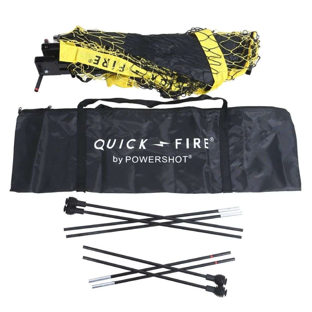 PowerShot® QUICKFIRE® Fußballtor 2,4 x 1,2m. Entdecken Sie ein revolutionäres Tor, dass durch Powershot entworfen und patentiert lassen wurde: Das POWERSHOT® Quickfire Fußballtor ist eine neue Innovation unserer Marke, die aus der Zusammenarbeit zwischen dem Fußball-Weltmeister von 1998, Franck Leboeuf und Ingenieuren entstanden ist. Das Quickfire-Fußballtor wurde für den Einsatz unter allen Bedingungen und zu jeder Zeit entwickelt und ist dank der integrierten Tragetasche leicht zu transportieren. Sie können so hart schießen, wie Sie wollen, das Tor wird nicht kippen. Außerdem lässt es sich leicht montieren und demontieren. Er kann auf Rasenplätzen, Kunstrasenplätzen und in Sporthallen eingesetzt werden, da seine hochwertige Stahlbodenstruktur allen Witterungsbedingungen standhält und eine unübertroffene Nutzungsdauer bietet. Zusätzlich schützen die Gummipuffer unter dem Sockel die Böden im Innenraum und sorgen für eine rutschhemmende Wirkung. Stahlkonstruktion von hoher Qualität. Leicht faltbares Tor für den Transport und die einfache Lagerung. Netz ohne Knoten. Einfache 2mm-Masche 50 x 50 mm. Gummi unter dem Stahlrahmen zum Schutz von Hallenböden. Selbstbeschwerendes und rutschhemmendes Tor. Die Tragetasche ist enthalten. Maße: 2,4 x 1,2m. Material: Stahl, Gummi, Synthetik. Farbe: gelb/schwarz.